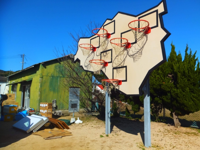家浦港ともう1つの港、唐櫃港のある唐櫃(からと)地区に到着。港から少し進むと、24時間鑑賞可能なパブリックアート『勝者はいない─マルチ・バスケットボール』by イオベット&ポンズを見つけました。