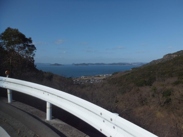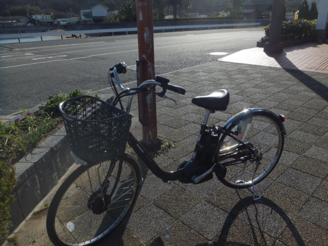 島の南側の甲生(こう)地区まで行ってみよう。斜面だらけで自転車にはちょっと厳しい道ですが、そこは電動パワーで乗りきりました。