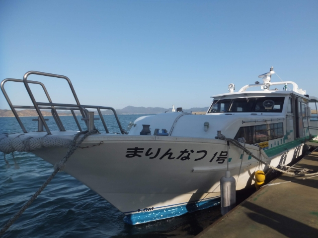 こちらが豊島(家浦港)行きの高速船「まりんなつ」。小型なので酔わないかどうか心配です。豊島までの所要時間は約35分、料金は片道1,350円。