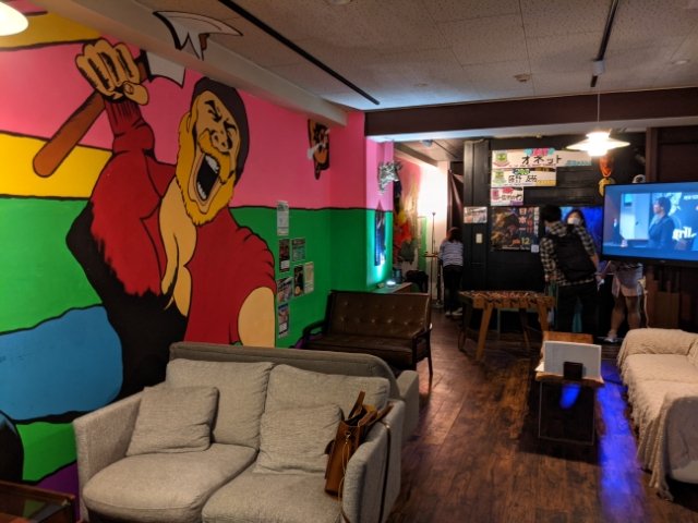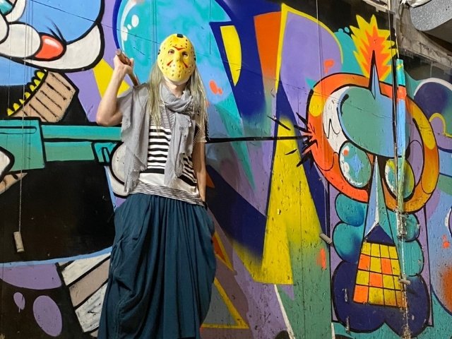 他にも被り物などの仮装用コスチュームもレンタル可能。特にジェイソンマスクは斧との組み合わせがばっちり。ウォールアートと相まって、思わず写真に撮りたくなります。