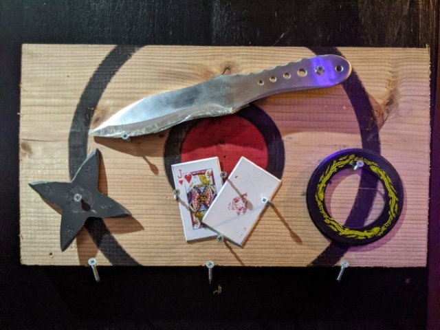 今回は手裏剣を追加してやってみたのですが、斧投げの後にやると、その軽さにびっくり!ただし、1時間ずっと斧だとかなり腕が疲れるので、間に軽いモノ挟むとちょうど良い感じです。