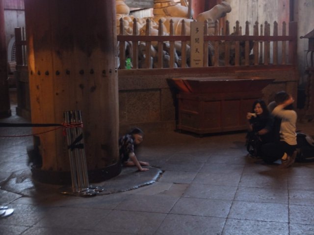 東大寺の柱の1つには、穴が開いてます。大仏様の鼻の穴と同じ大きさといわれており、ここを潜り抜けると無病息災のご利益があるそうです。