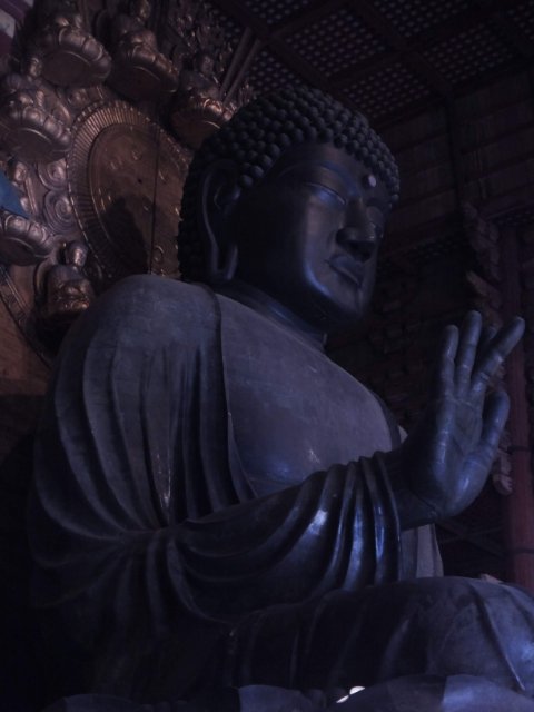 薄暗い大仏殿に入ると、奈良の大仏こと東大寺盧舎那仏像がただ静かに座っていました。