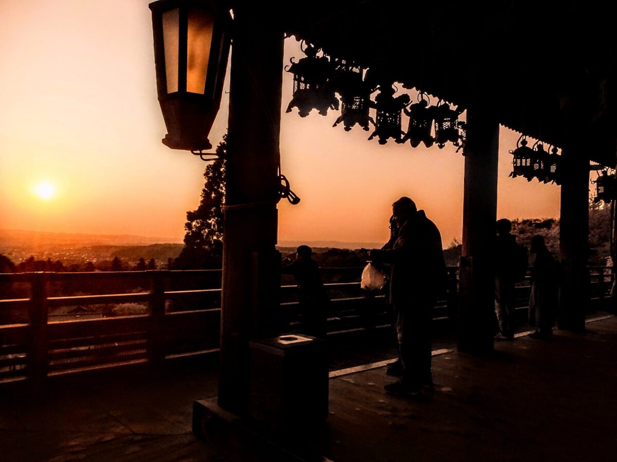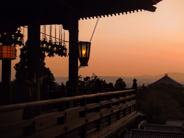 お堂の舞台からは、奈良の街並みを一望できます。山に登ったわけではないのに、これだけの景色が気軽に見れるのはすごいです!さらに、西向きに造られているため、夕陽スポットとしても人気。古都に沈む夕陽を眺めて「1300年前の人も同じ景色を眺めていたかのかなぁ」といった様な古代ロマンに浸るにはもってこいの場所です。