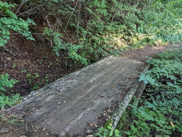 途中にある木橋は、一部が腐食しているそうです。これはちょっと怖いですね。