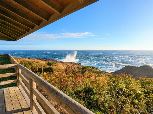海辺に建つ休憩所は見晴らし抜群。目の前に広がる青い海はとっても美しいです。天気が良い日に来れて良かったです!