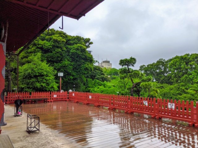 目を引くのは、この舞台造り。その名が示す通り清水寺をモチーフとしており、小規模ながらも不忍池を一望できる絶好のロケーションに建っています。