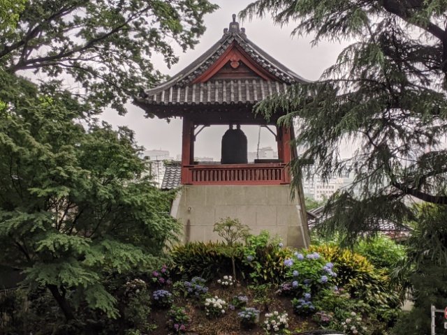 精養軒のすぐ近くにある時鐘堂には、時の鐘が吊るされています。時計という道具が普及する以前、鐘による時報は庶民に時間を知らせる重要な役割を持っていました。
