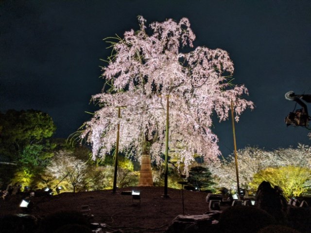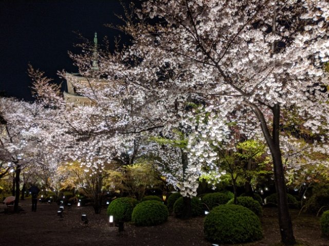 以前3月上旬に訪問した際はサクラがまだ咲いていませんでした。しかし、3月下旬に訪問した今回は見事に咲き乱れるサクラに出会うことができました!夜の闇に浮かび上がる白やピンクの花に、春の訪れを感じます。