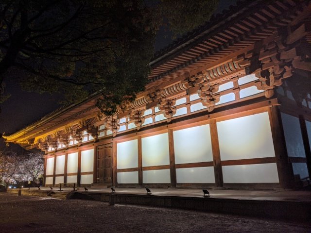 夜間拝観期間は、金堂&講堂の諸堂見学も可能です。どちらも非常に多くの仏像が並んでおり非常に壮観ですが、残念ながら撮影は禁止されています。