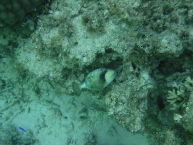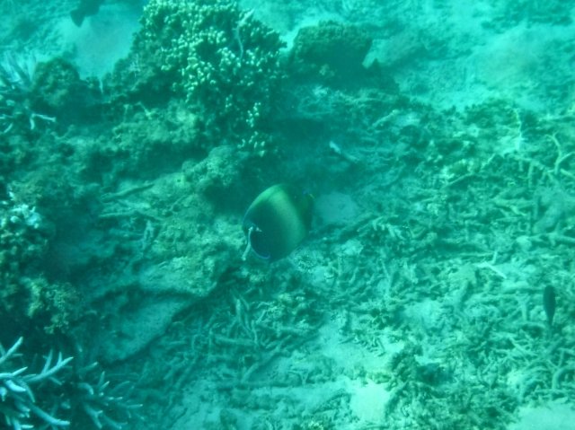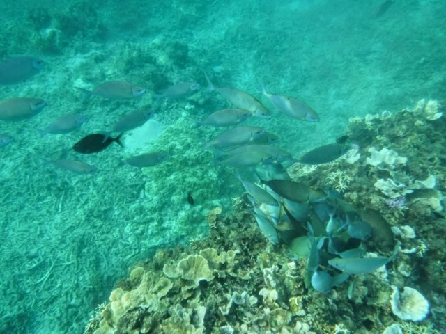最初は魚がいないなーと思うのですが、すぐに水深3~5mほどのサンゴ礁ゾーンへ突入!サカナフィーバーです!!