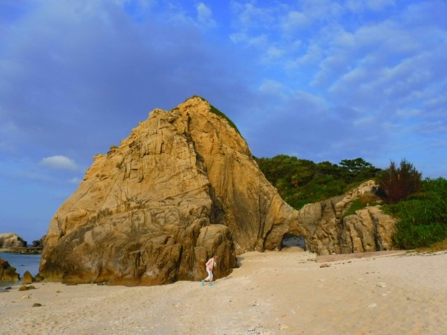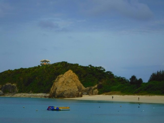 海から阿波連ビーチを見ると、巨大な岩と、その奥に小さな展望台の姿が。こちらはクバンダキ展望台。砂浜から歩いて行くことができるそうなので、行ってみることにしました!