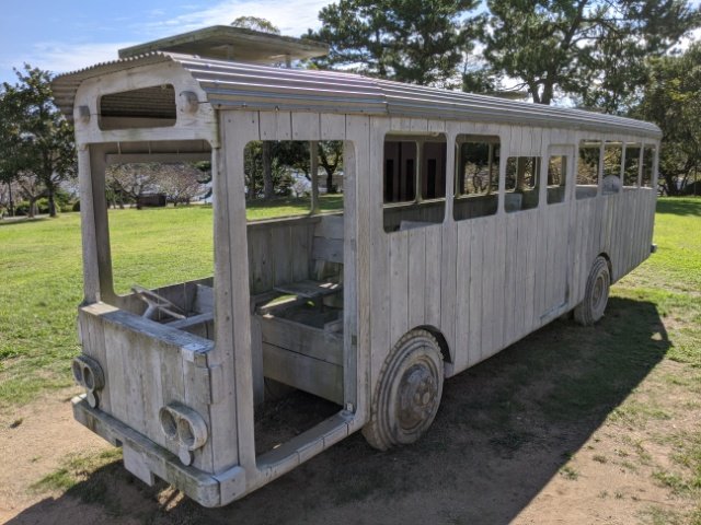 乗客のほとんどいない夜のバス・・・哀愁を感じるテーマですが、太陽の光が降り注ぐ中で見ると、なんだか陽気に感じます。白く輝くバスは、どこかピクニックにでも行きそうな雰囲気。