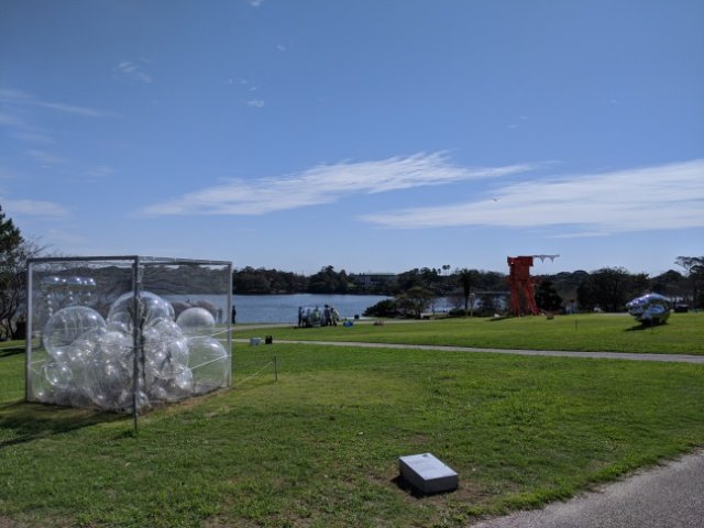今回訪問したときわ公園も、そんな彫刻展示場の1つ。園内にあるUBEビエンナーレ彫刻の丘には、作品があちこちに並びます。