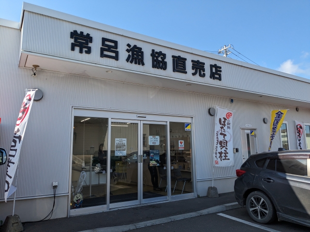 新鮮な生のホタテを買うのにおすすめなのが常呂漁協直売店。ところ遺跡の森から車で15分、トコロチャシ跡遺跡から車で5分ほどのところにあります。