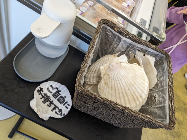ちなみに、ここではホタテの貝殻がテイクフリー。きっと現地では無限に出てくるのでしょうが、旅行客にとっては嬉しいサービス。お部屋に飾ったり、おみやげにいかがでしょうか。