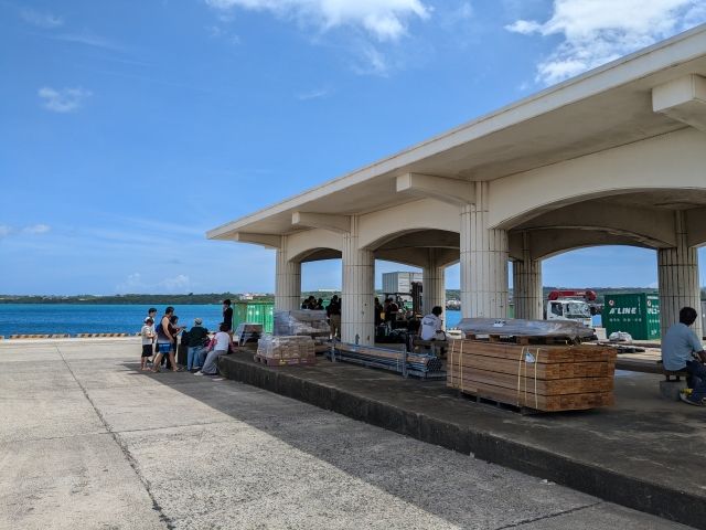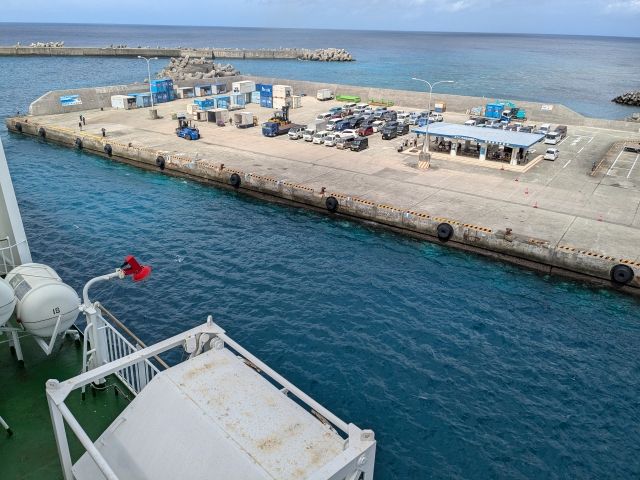 通常、この便が与論島で寄港するのは「供利(ともり)港」。しかし、那覇から与論島に向かったときは、波の影響で港が「茶花(ちゃばな)港」に変更となりました。
