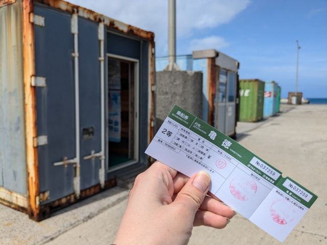 こちらのコンテナが券売所。今回はWILLERにて事前予約、事前支払済み。乗船票だけ記入してチケットをいただきました。