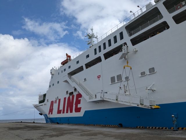 ほぼ定刻通りに徳之島の亀徳新港に到着しました。無事到着できてひと安心です。