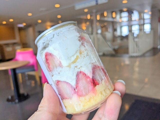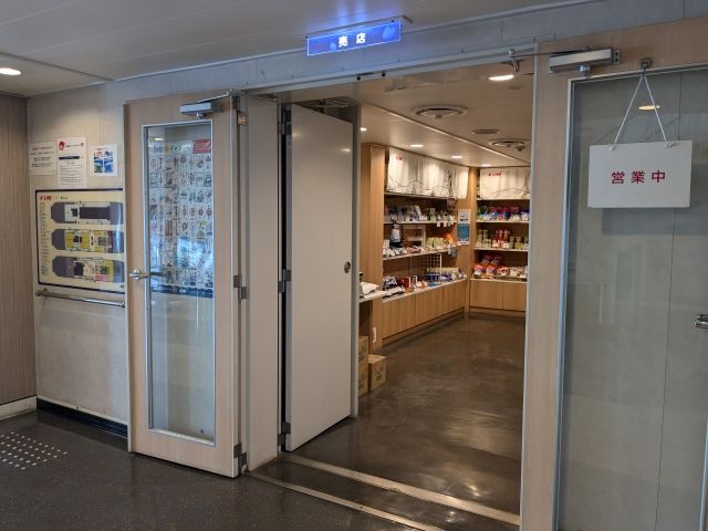 ショップでは食料品、お酒、お土産などが販売されています。営業時間は短く、港に入港直後少しの間だけ。お買い物はお早めに。