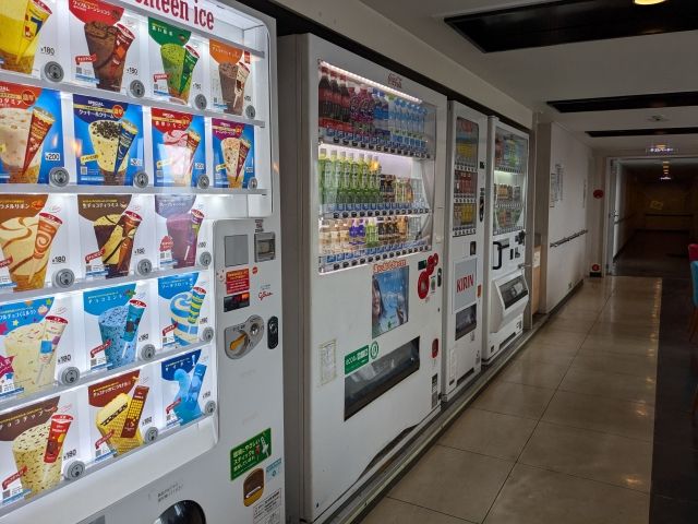 自販機はドリンク、セブンティーンアイスなどのラインナップ。