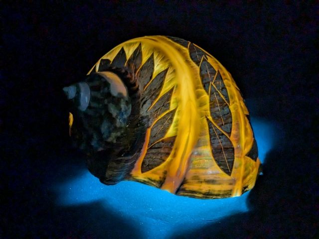 目を引くのは夜光貝の彫刻。精巧な彫刻と、それを引き立てるライトアップが美し過ぎる作品でした。