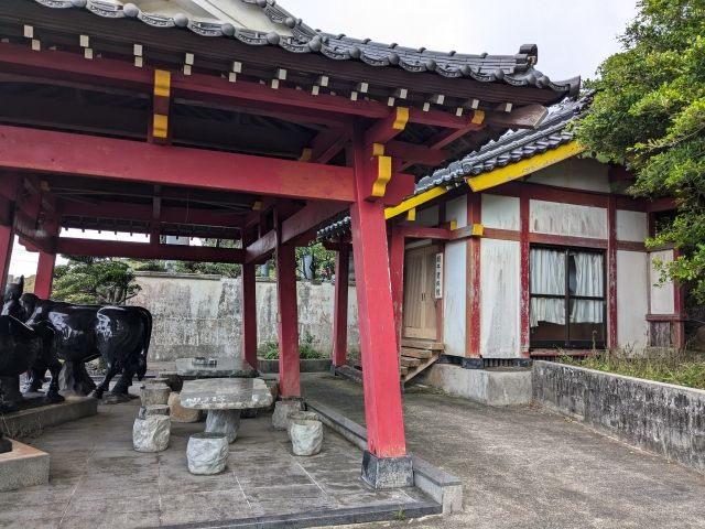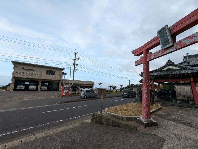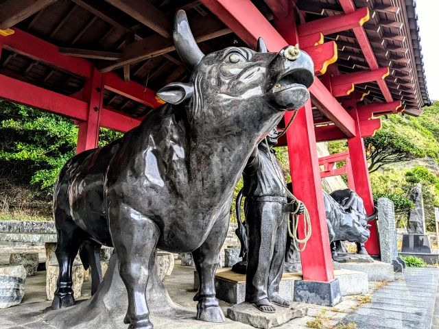 ゴリラ岩と合わせて向かったのが闘牛神社。駐車場は無かったので、ちょっとだけ路肩に停めさせてもらい見学しました。