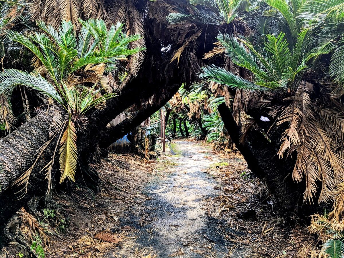 大きなソテツに包まれた道は、ジャングル探検しているような気分。大人でもワクワクしてしまいますね。