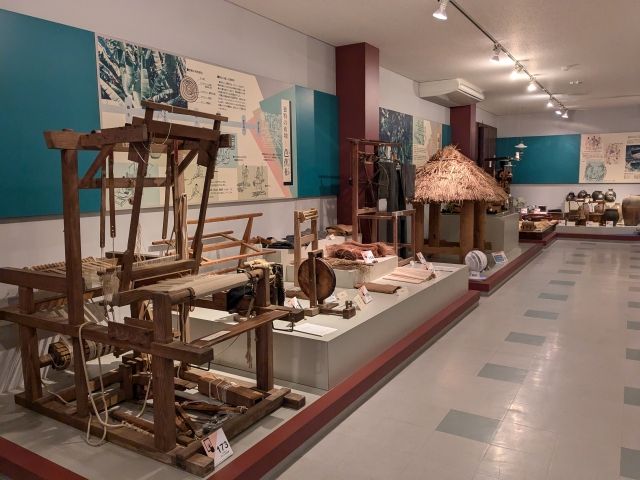 床が高く正方形な徳之島の民家、芭蕉布を織るハトゥン(機織機)など、様々な民具も並んでいます。