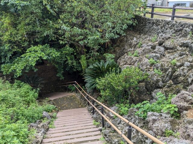 ウンブキ(浅間湾屋洞穴)は、徳之島空港のすぐ近くにある観光スポット。駐車場からは階段を降りていきます。