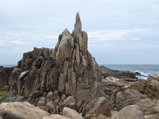 そびえ立っているのは「ろうそく岩」。鋭く尖った姿はゴシック建築のようです。