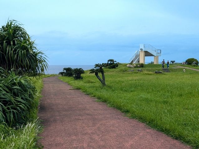 駐車場のすぐ目の前に広がるのは芝生広場。岬という名称から切り立つ崖の上をイメージしていましたが、想像していたよりもずっと広々としています。