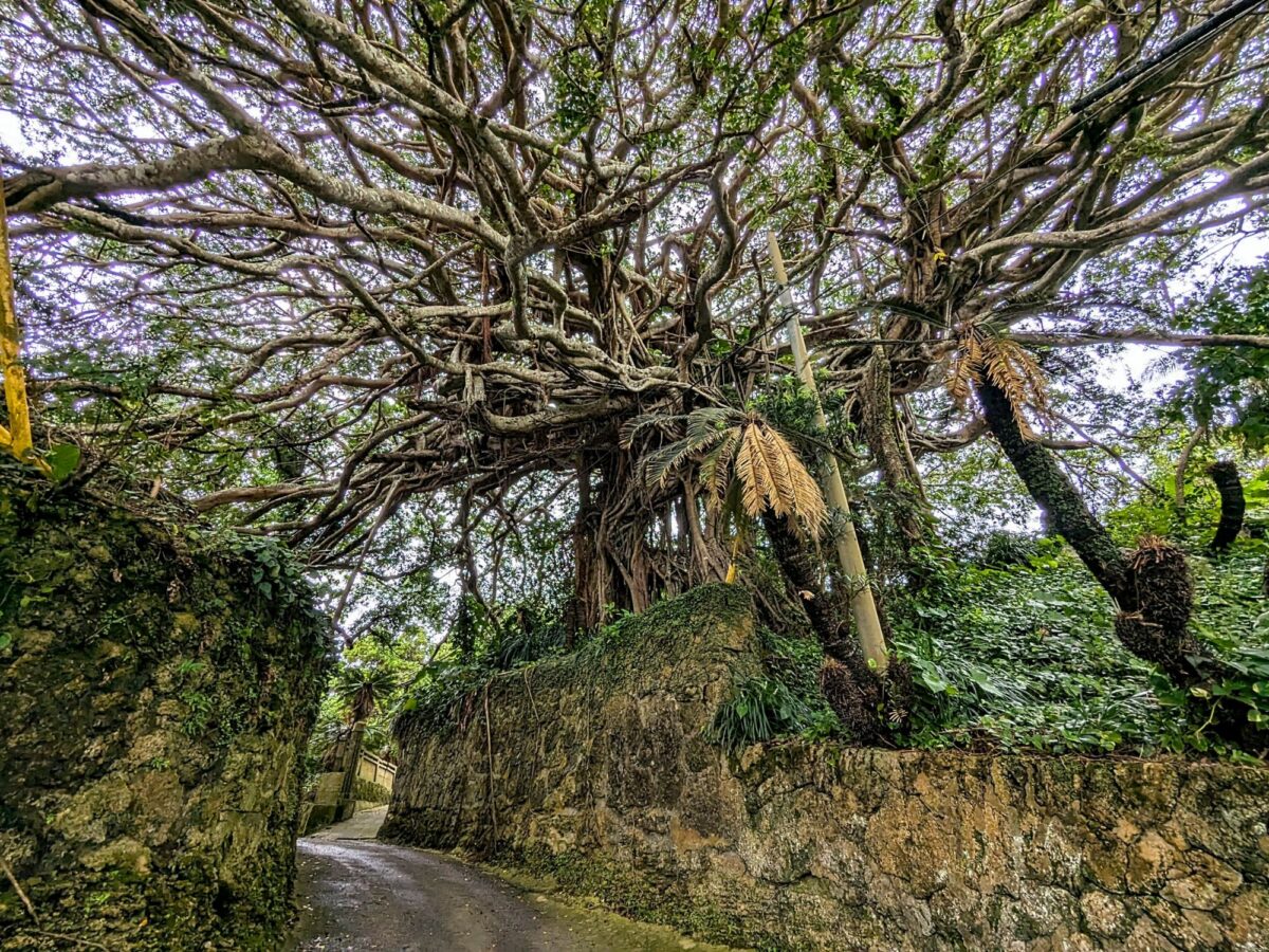 道路沿いなので、5分程度で見ることができます。実際にガジュマルが映えているのは民家の敷地内なので、散策はNGとのこと。