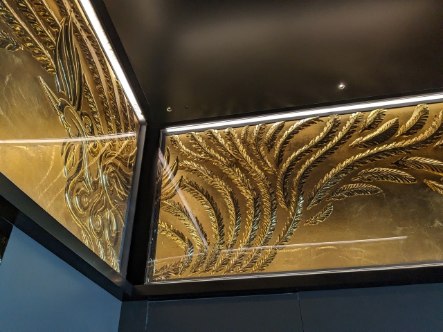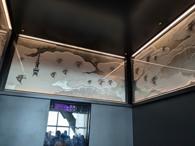 帰りに乗ったエレベーターは「秋」。祭りをテーマにしており、煌びやかな鳳凰が描かれています。