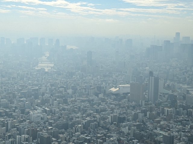 富士山や筑波山もばっちり見えるはずですが、ちょっと雲がかってしまい、遠景はあまり見ることができませんでした。でも、この靄のかかったような景色もまた幻想的で良いです。