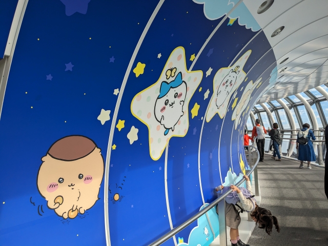 スカイツリーではアニメやアーティストとのコラボ企画を頻繁に開催しています。訪問した際2023年10月17日〜2024年1月16日の期間は、『ちいかわ☆星ふるスカイツリー』を開催中でした。