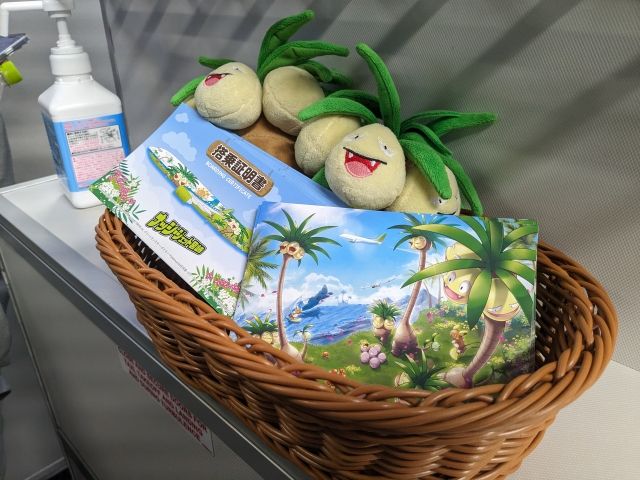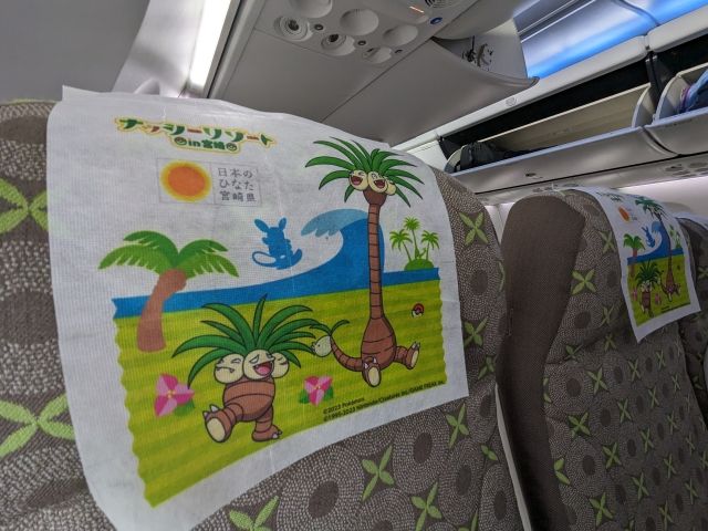 ヘッドレストカバーにもナッシーがいたり、座席のテーブルにもマンタインやキレイハナがいたりと楽しい演出がたっぷり。ポケモンってかわいくて良いなとあらためて実感しました。