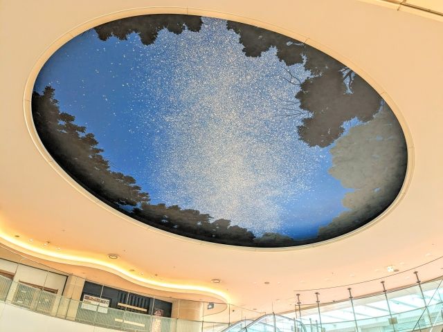 天井に広がるオーバル型の「銀河」。意外と気が付かれていませんが、一度目にすると忘れられないくらいのインパクト。