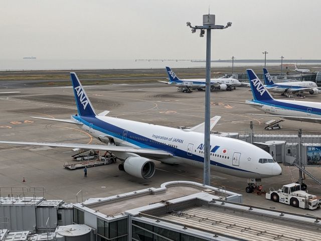 とりあえず向かった5階の展望デッキからは、ずらりと並ぶANAのブルーの機体。目の前が海なので、第1ターミナルの展望デッキよりも開放的な気分です。天気が良いと東京スカイツリーや東京ディズニーリゾートも見えます。