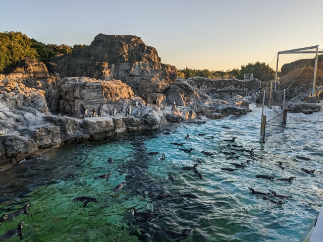 この水族館には、通常水族館の人気者であるイルカやアザラシなどの海獣類がおりません。それを補って余りあるのが大量のペンギン!屋外のペンギンプールにはフンボルトペンギンやミナミイワトビペンギンがたくさん。水中の様子が見れる観察窓も設置されており、のびのびと暮らすペンギンを飽きるほど楽しめます。