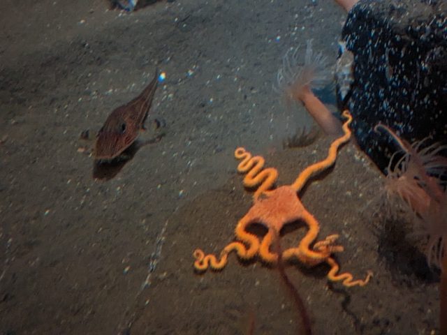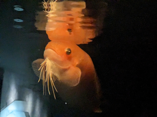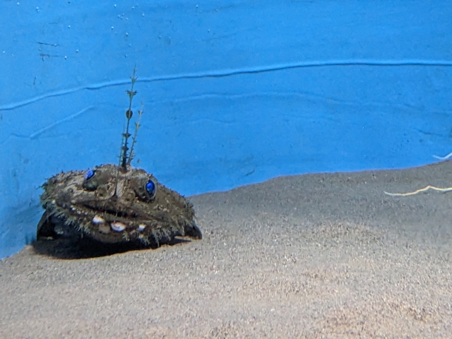 数々の生き物の中でも一番インパクトがあったのがノドグロヒメアンコウ。マストのように高く伸びたトゲが生えており、まるで沈没船のような渋さを醸し出しています。よく見ると、瞳がとってもキレイなブルーで吸い込まれそう・・・!