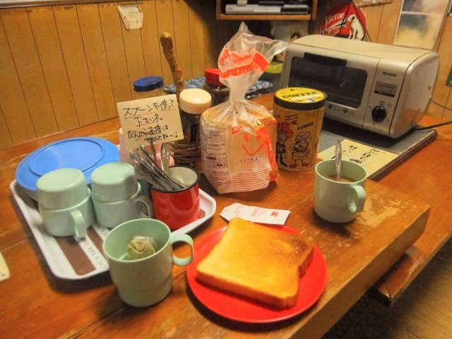 素泊まりといいつつも、トースト1枚+コーヒーor紅茶の朝食をいただくことができます。セルフサービスですが、早朝に出発することが多い屋久島では自由なタイミングで食べられるのは凄く嬉しいサービス。