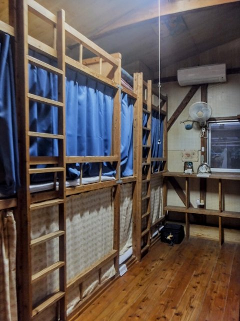 二段ベッドですが、カーテンがあるのでばっちりプライバシーは守れます。宿泊料金は素泊まりで2,500円。おそらく屋久島最安値ではないでしょうか?