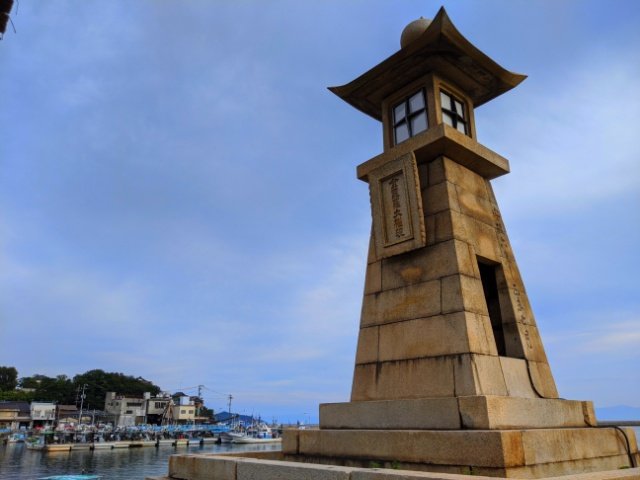 そんな鞆の浦ですが、訪れる人のほとんどが見に行くスポットがあります。それがこちらの常夜灯(じょうやとう)。船を誘導するための灯台として江戸時代に造られました。高さはてっぺんまで5.5mと想像よりも大きく、現存する江戸時代に造られた常夜灯の中では最大級とのこと。
