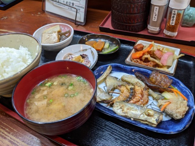 私が頼んだのは小魚定食(1,000円)。いろいろな小魚・エビが盛り合わせになったかわいらしい定食。
