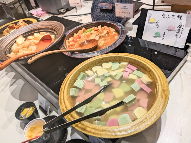 こちらのビュッフェ、3色のお麩加賀生麩や手巻き寿司などご当地感あふれるラインナップがそろっています!