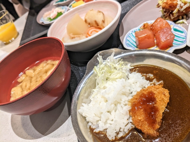 さらに金沢カレー、めった汁、金沢おでんも。金沢カレーは金属の器にキャベツとカツのトッピングもあります。