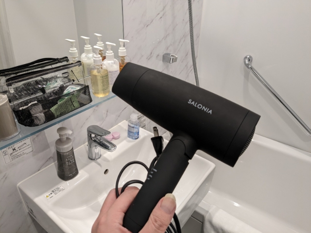 部屋に置かれていたドライヤーはサロニア!決して高級モデルではありませんが、使いやすいタイプ。風量もあるので、ロングヘアでも安心です。