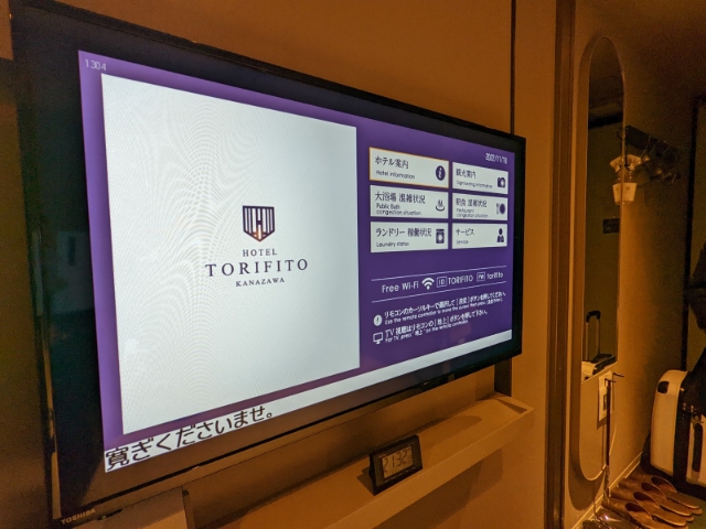 テレビには設備やレンタル品などをはじめとしたホテルの案内が流れています。さらに館内のコインランドリーの使用状況まで見れます。いやー、便利便利!