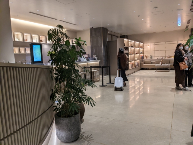 ロビーは清潔感があふれています。本棚に並んでいる書籍は柳宗悦、長谷川等伯、伊藤若冲などなど。選んだ人の美術に関する造詣の深さが感じ取れるランナップです。